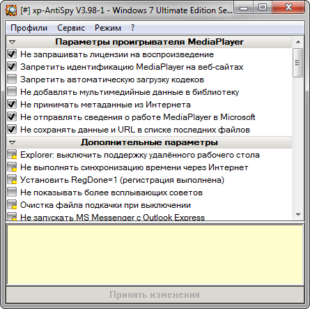 Работа с xp-AntiSpy