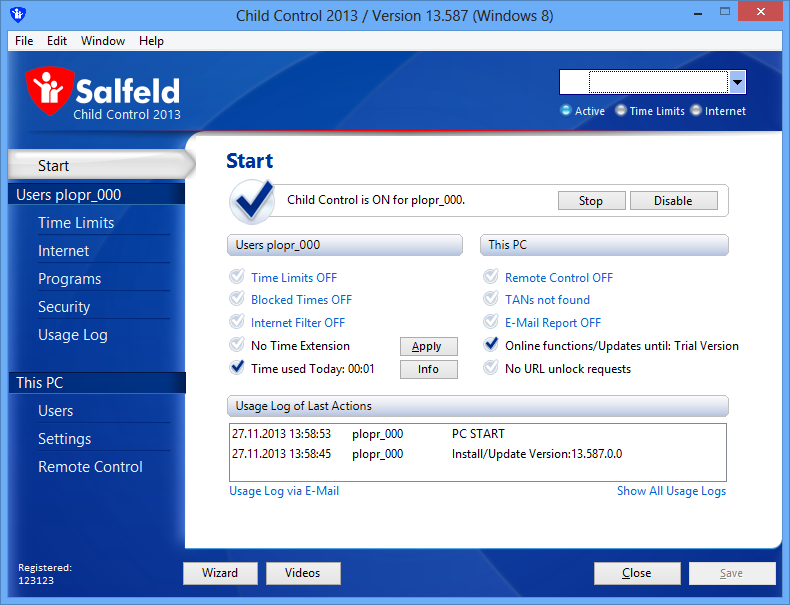 Child Control от Salfeld обеспечивает надёжную защиту от несанкционированного использования компьютера детьми