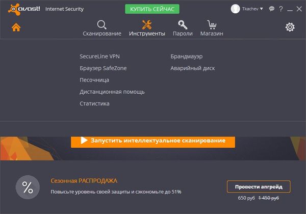 Работа с Avast Premium Security