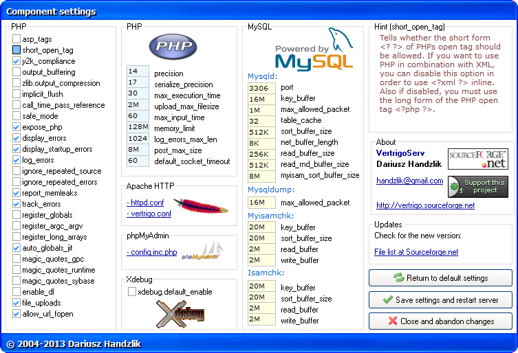 - В составе пакета — Apache, MySQL, PHP и Xdebug, что обеспечивает полную поддержку современных веб-технологий