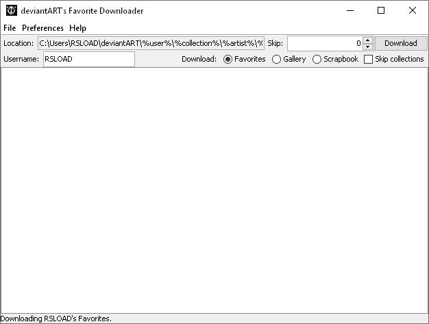 Использование утилиты не вызывает сложностей: пользователю нужно скопировать имя автора с deviantART и вставить его в соответствующее поле программы. После этого запускается процесс извлечения информации о доступных изображениях и их последующего скачивания. Программа сама создаст папку deviantART в директории, где находится исполняемый файл, и разместит в ней подпапки с именами художников. Также предусмотрена опция пропуска коллекций, что помогает избежать загрузки нежелательных групп работ. Качественные изображения сохраняются в высоком разрешении, в тех форматах, в которых они были загружены на платформу — чаще всего это PNG, JPEG и иногда GIF.