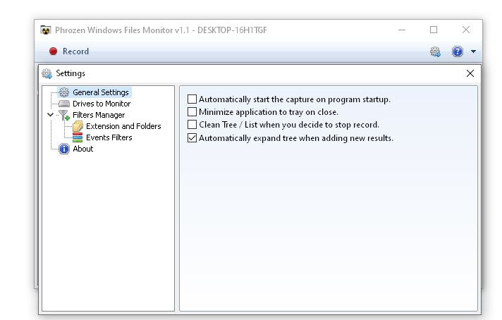 Работа с Phrozen Windows File Monitor