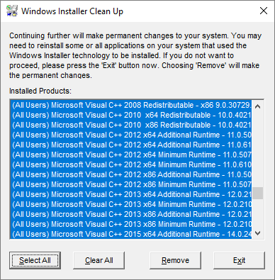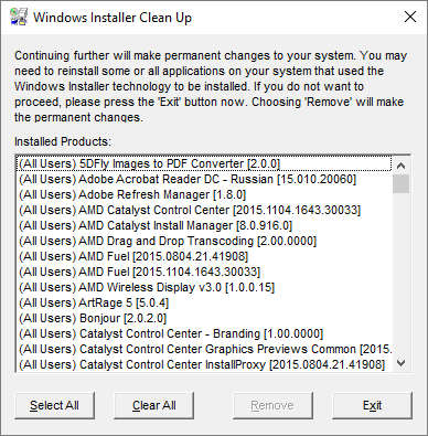 Работа с Windows Installer Clean Up Utility