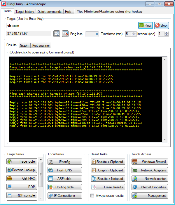 - Проверка соединения с хостом при помощи команды ping в текстовом или графическом режиме