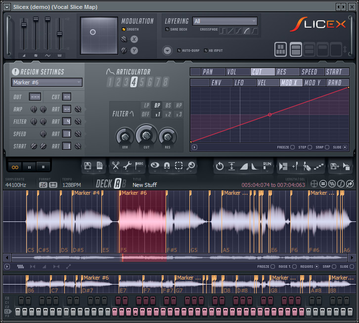 SliceX представляет собой специализированный аудиоплагин, ориентированный на работу со сложными сэмплами и ритмическими паттернами. Программное обеспечение анализирует входной аудиосигнал, определяя точки перехода между отдельными звуками, после чего разделяет трек на сегменты. Каждый из этих сегментов можно отдельно адресовать, изменять тайминг, громкость и высоту тона, что делает инструмент особенно полезным при аранжировке и ремикшировании. Алгоритмы, используемые в slicex, способны корректно обрабатывать как простые ударные петли, так и многослойные музыкальные фрагменты.