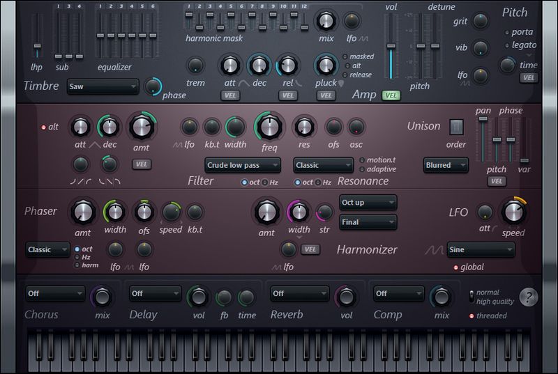 Harmless v1.0.47 — это компактный, но мощный виртуальный синтезатор от компании Image-Line, сочетающий принципы аддитивного и субтрактивного синтеза звука. Программа предлагает гибкие настройки для создания уникальных тембров, подходит как для начинающих, так и для опытных музыкантов. Благодаря интуитивному интерфейсу и малому размеру, этот VST-плагин легко интегрируется в любую DAW-среду.