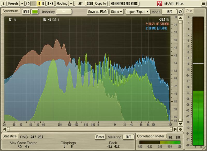 Программа Span Plus идеально подходит для мониторинга баланса частот на этапах сведения и мастеринга.