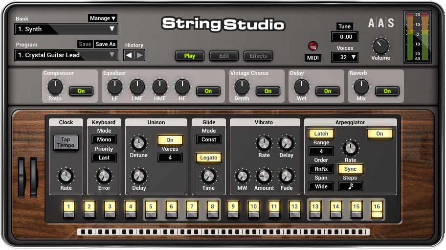 - Поддержка формата VST для интеграции в цифровые аудиостудии
