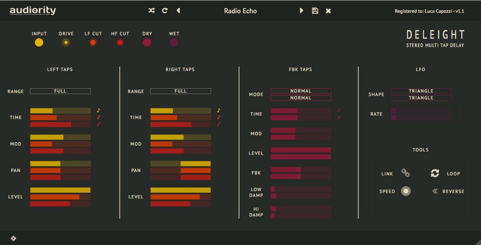 Audiority Deleight v1.1.1 — это плагин эффектов формата VST, AU и AAX, разработанный для цифровых аудиостудий, где важна точность и насыщенность звуковой задержки. Программа воспроизводит особенности аналоговых устройств обработки сигнала, при этом сохраняя гибкость цифровой платформы. Основой работы является стерео многоканальная задержка с возможностью точной настройки до восьми отводов — по четыре на каждый канал.