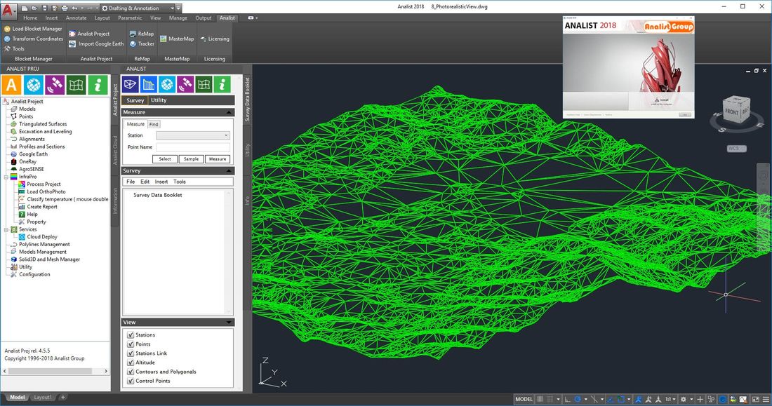 Работа в Analist начинается с загрузки проекта и импорта данных, полученных с полевых измерений. Система позволяет синхронизировать информацию с различными устройствами — от ручных GPS-приемников до автоматизированных станций. После загрузки данные автоматически обрабатываются и отображаются в графической среде, где можно выполнять построение контуров, расчет объемов, а также генерировать отчеты. Инструменты программного обеспечения позволяют проводить коррекцию ошибок измерений и увязку привязок. Интерфейс интуитивно понятен, а навигация по проекту упрощена за счет масштабирования и слоевой структуры. В процессе работы доступен полный контроль над каждым элементом топоплана. Несмотря на отсутствие языковой локализации на русский, английский интерфейс прост для освоения даже начинающими пользователями. Программа активно используется в инфраструктурных проектах, где требуется точность обработки data.
