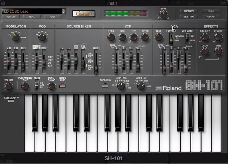 Использование Roland VS SH-101 не требует глубоких знаний синтеза звука — интерфейс максимально приближен к оригинальному устройству. Программа легко загружается как VST-инструмент в любой аудиоредактор, поддерживающий этот стандарт. Основные блоки синтеза включают один осциллятор с формами сигнала пила, импульс и прямоугольник, а также шумовой генератор. Фильтр низких частот с резонансом позволяет моделировать классическое «пение» SH-101, а модуль огибающей охватывает атаку, затухание и уровень устойчивого звучания. Также доступна модуляция с помощью LFO, с возможностью выбора формы волны и скорости. Особенность Roland VS SH-101 — в возможности ручной настройки дрейфа высоты тона, имитирующего поведение прогревающегося аналогового синтезатора. Программа отлично подходит как для создания басовых линий, так и для арпеджио, падов и эффектов.