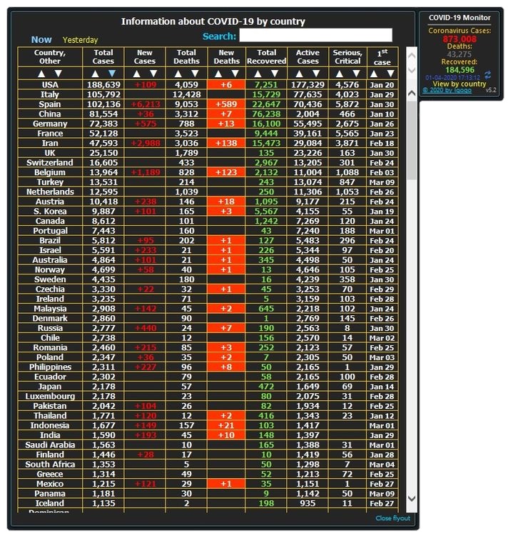 - Отображает обновляемую статистику по странам и регионам