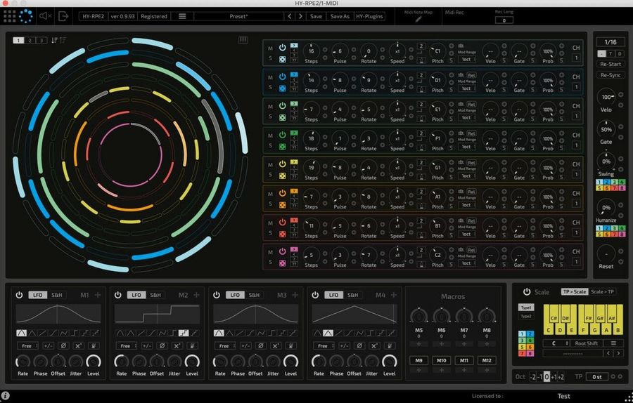 HY-RPE2 представляет собой модульную систему для построения музыкальных последовательностей, где каждый элемент может быть точно настроен под нужды проекта. Плагин предоставляет два параллельных секвенсора, работающих синхронно или независимо, что позволяет создавать насыщенные полифонические текстуры и ритмические слои. Один из секвенсоров использует традиционный грид-интерфейс, напоминающий шаговые секвенсоры классических синтезаторов, второй — евклидов механизм, генерирующий органичные и сложные ритмы на основе математического распределения ударов. Такой подход позволяет добиваться как механической точности, так и живой импровизации в звучании. Программа хорошо интегрируется в любую цифровую аудио станцию, поддерживающую формат VST.