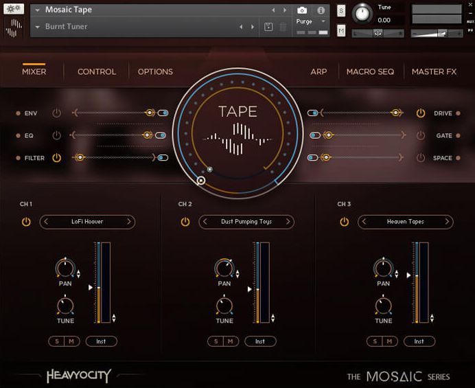 Heavyocity Mosaic Tape — виртуальный инструмент для платформы Kontakt, ориентированный на создание атмосферных, кинематографических и экспериментальных звуков с применением ленточной обработки. Это часть серии Mosaic, объединяющей уникальные текстуры, сгенерированные на основе аналогового звучания. Программа подходит для саунд-дизайнеров, композиторов и музыкантов, стремящихся расширить арсенал звуковых эффектов.