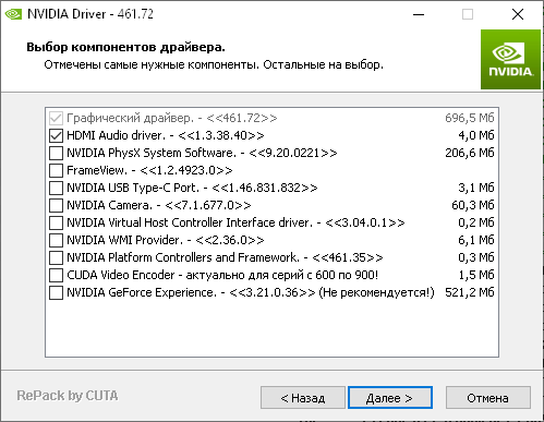 - Репак предоставляет возможность выборочной инсталляции компонентов драйвера.