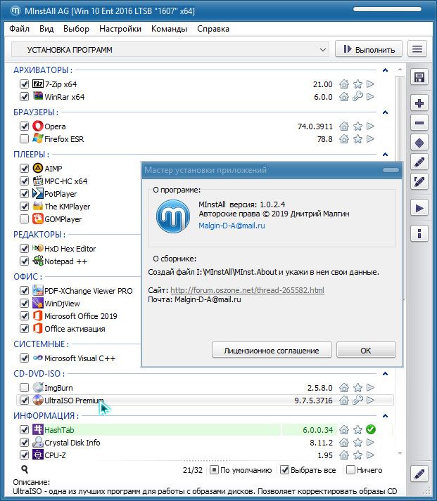 MInstAll DVD 12.2022 от AG — это универсальный сборник программного обеспечения, предназначенный для быстрой и удобной установки необходимых приложений на чистую операционную систему. В составе диска содержится тщательно отобранная коллекция софта, каждый элемент которой предварительно активирован и готов к использованию без дополнительных действий. Подборка охватывает широкий спектр категорий: от архиваторов и браузеров до офисных пакетов и системных утилит, что делает её незаменимым решением при настройке ПК.