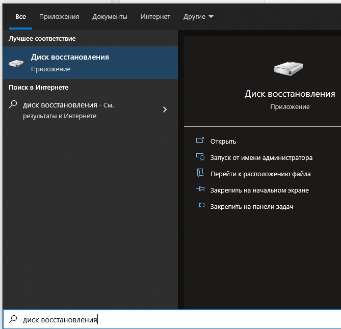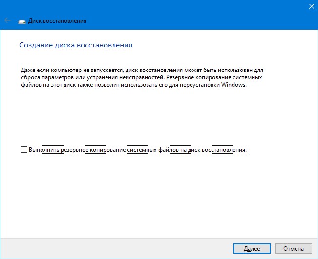Работа с Создать диск восстановления