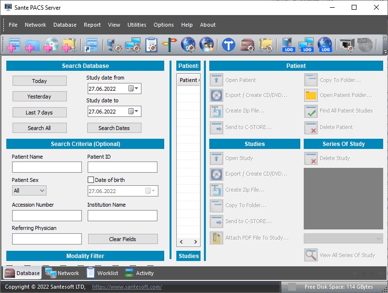 Работа с Sante PACS Server
