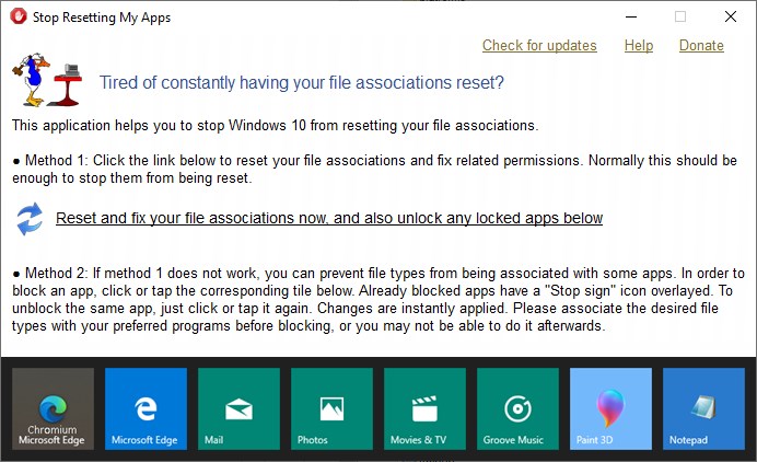 Stop Resetting My Apps предлагает практичное решение для пользователей, которые устают постоянно настраивать систему заново. Одним из главных преимуществ является отсутствие необходимости в установке — достаточно запустить исполняемый файл. Программа не оставляет следов в системе после закрытия, что делает её безопасной в использовании. При этом она эффективно справляется с защитой ассоциаций, что особенно актуально после масштабных обновлений Windows.