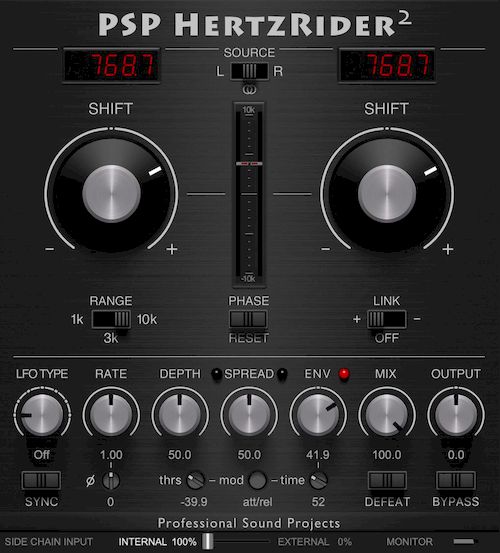 Частотный сдвиг в PSP HertzRider2 позволяет создавать уникальные аудиоэффекты, недоступные при помощи традиционных процессоров.