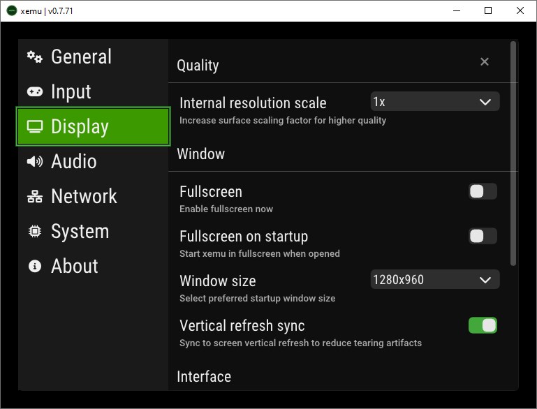 - Программа предоставляет гибкие опции графики — можно изменять разрешение, включать полноэкранный режим и настраивать отображение через раздел «Display».