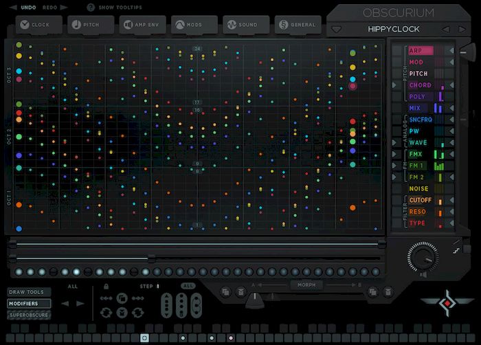 Ключевой особенностью Sugar Bytes Obscurium является 32-шаговый Motion Sequencer, который позволяет назначать движения не только на ноты, но и на любые параметры синтеза.