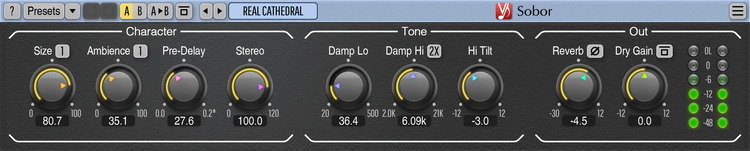 Voxengo Sobor 3.2 представляет собой программный аудиоплагин, основанный на алгоритмической модели реверберации. Он пришёл на смену более раннему продукту — CRTIV Reverb, улучшая его функционал и предлагая более гибкие параметры управления. Интерфейс программы разделён на три логических блока: блок основных настроек ревербератора, секция цветового оформления звучания и панель управления уровнями выходного и входного сигнала. Такая структура позволяет быстро ориентироваться при настройке и вносить изменения в режиме реального времени.