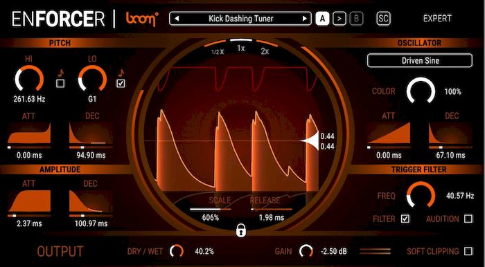Enforcer 1.2.9 от Boom Library — это эффектный инструмент для профессиональной звуковой обработки, ориентированный на усиление ударных и басовых частот. Программа работает с любыми аудиодорожками, обнаруживая переходные процессы и добавляя к ним заранее подготовленные сэмплы, что придаёт звуку больше энергии и чёткости. В основе технологии лежит анализ огибающей сигнала с помощью двух пороговых регуляторов, которые определяют моменты срабатывания.