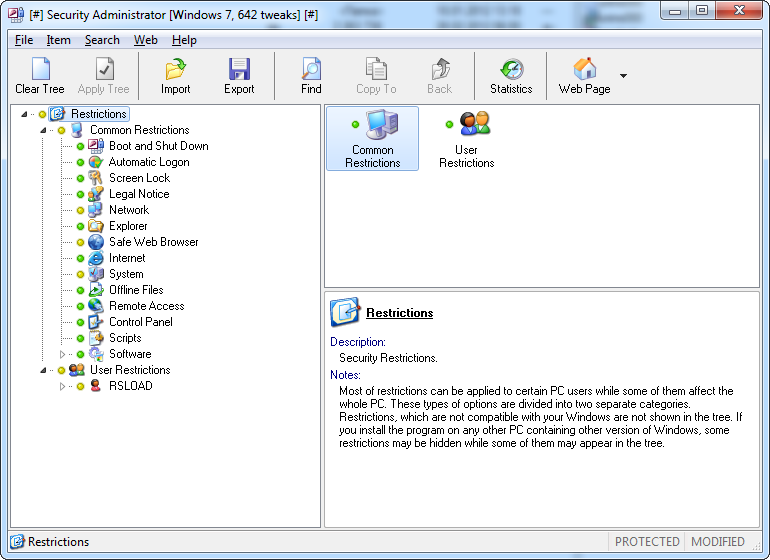 Security Administrator разработана компанией Ixis Research LTD как инструмент для тонкой настройки доступа к компонентам операционной системы. Программное обеспечение позволяет устанавливать ограничения на использование различных функций Windows, включая запрет на изменение параметров, запуск определённых приложений и доступ к системным утилитам. Особенно актуальна данная утилита в корпоративной среде, где важна сохранность информации и предотвращение вмешательства посторонних в настройки рабочей станции.