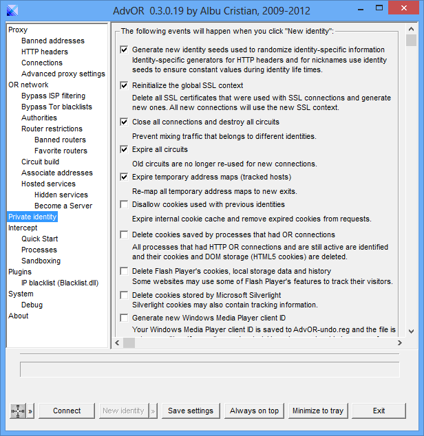 Программное обеспечение представляет собой альтернативный клиент для взаимодействия с сетью Tor, отличающийся от стандартного набора Tor+Vidalia+Polipo. Оно создано для автоматизации и упрощения процесса маршрутизации трафика через зашифрованные узлы, что обеспечивает высокий уровень конфиденциальности. С помощью Advanced Onion Router пользователь может эффективно скрывать своё местоположение и адрес IP, оставаясь анонимным. Интерфейс приложения выполнен на английском языке, что требует базового понимания языка для корректной настройки.