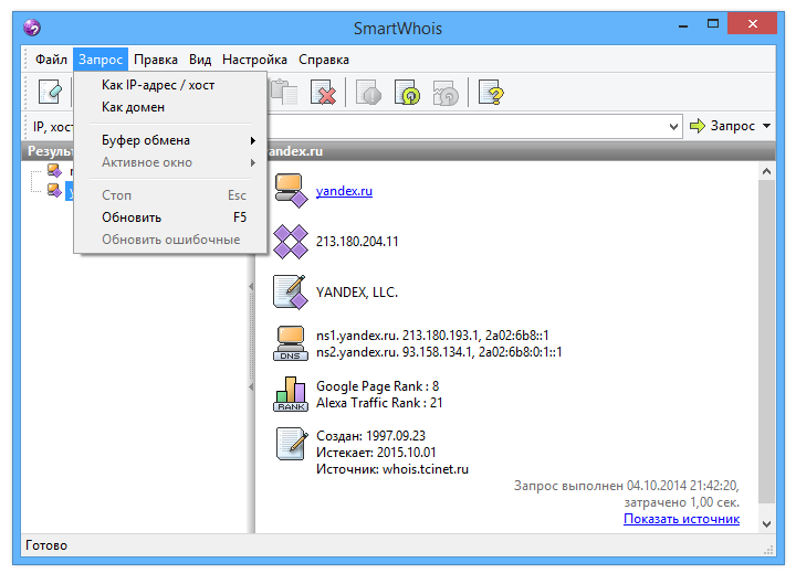 - Работает в онлайн-режиме, подключаясь к глобальным whois-базам данных
