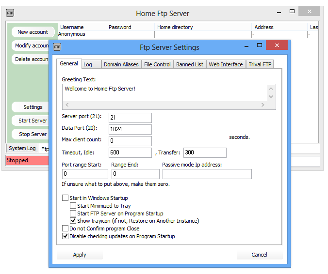 Home FTP Server 1.14.0 Build 176 — легковесное приложение для быстрого развертывания FTP-сервера на персональном компьютере под управлением Windows. Программа проста в настройке и ориентирована на пользователей любого уровня, позволяя легко организовать обмен файлами в локальной сети или через интернет. Благодаря интуитивному интерфейсу и минимальным требованиям к системе, запуск сервера не требует глубоких технических знаний.