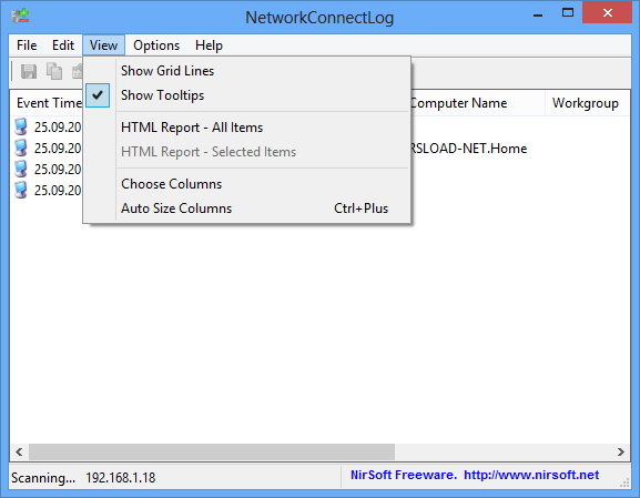 NetworkConnectLog 1.15 — это компактное приложение, предназначенное для мониторинга подключений к локальной сети. Программа автоматически фиксирует появление новых устройств, регистрируя их IP-адрес, имя компьютера, рабочую группу и время подключения. Утилита не требует установки и подходит для использования в офисных и домашних сетях.