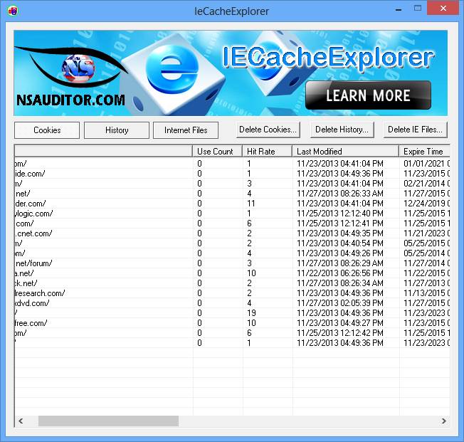 - Просмотр содержимого кеша браузера Internet Explorer с детализацией