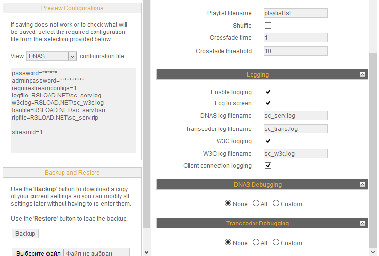 Работа с SHOUTcast DNAS