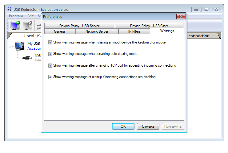 Работа с USB Redirector