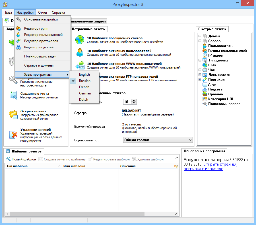 ProxyInspector разработан компанией ADVSoft и относится к категории систем мониторинга сетевой активности. Программа анализирует лог-файлы прокси-сервера, автоматически извлекая из них данные о запросах, посещённых сайтах, объёмах переданных данных, используемых протоколах и других параметрах. Поддерживается работа с различными форматами логов, включая стандарты от известных прокси-решений, таких как Squid, Microsoft Forefront TMG, ISA Server и другие. Интерфейс программы доступен на русском языке и других локализациях, что делает её удобной для использования в русскоязычных организациях.