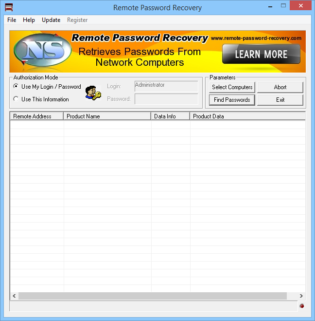 - Возможность восстановления паролей как на локальной машине, так и с удалённых компьютеров в сети