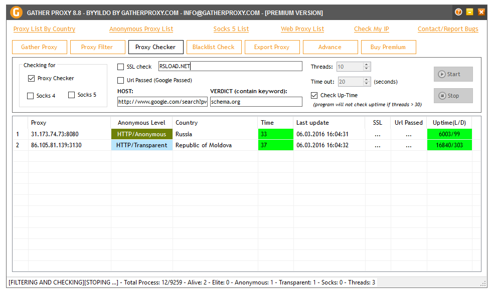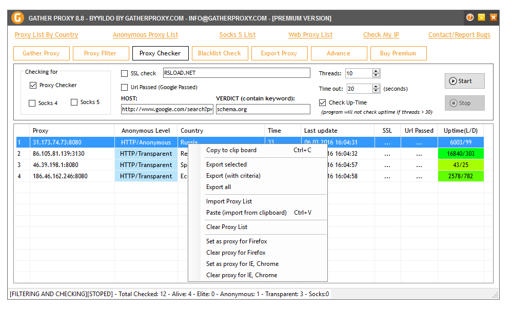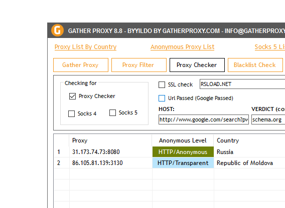 Программа использует только актуальные данные с gatherproxy.com, что обеспечивает высокий процент рабочих прокси после проверки.