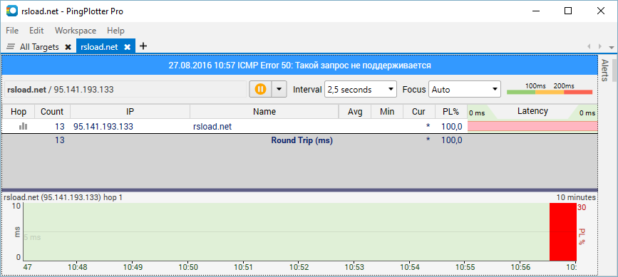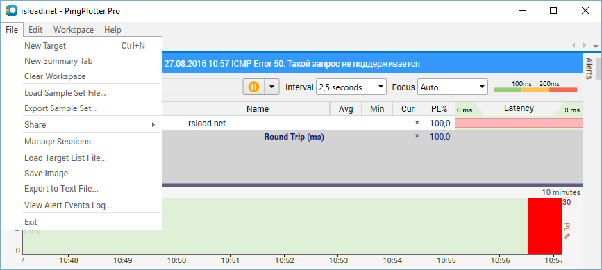 Работа с PingPlotter