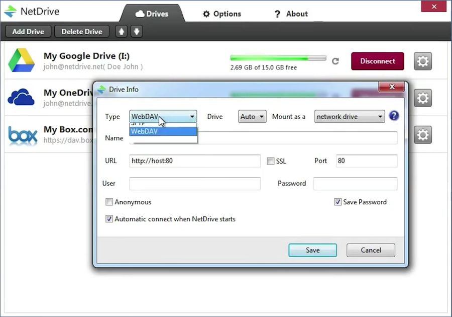 NetDrive 2.6.17 Build 965 — удобное приложение для монтирования облачных хранилищ и сетевых ресурсов в виде локальных или сетевых дисков. Программа обеспечивает прямой доступ к удалённым файлам, не требуя их предварительной загрузки. Пользователи получают возможность работать с данными так же, как с файлами на жёстком диске.