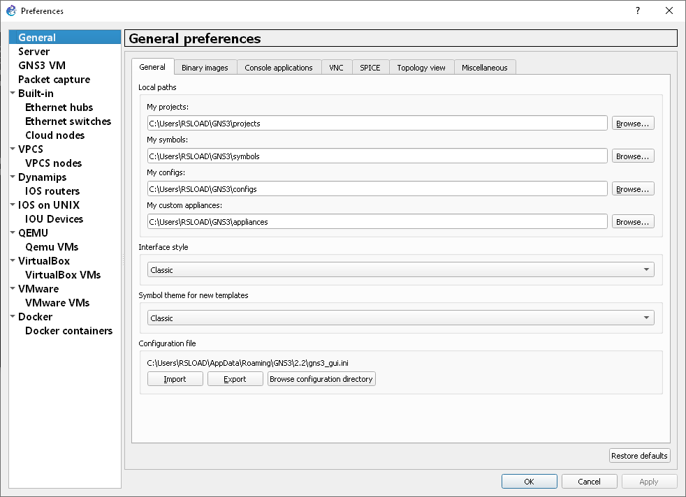 Работа с GNS3