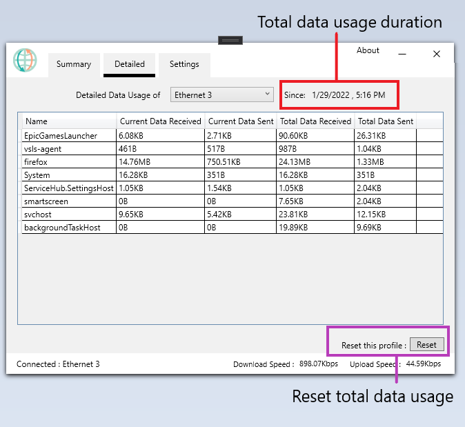 После установки и запуска программы пользователь видит основное окно с двумя графиками — один отображает входящий трафик, второй — исходящий. На панели задач появляется иконка, нажатие на которую быстро раскрывает текущие параметры сети. В разделе со статистикой можно проследить, какие приложения активно используют интернет, и оценить их вклад в общий объём переданных данных. Программа не требует дополнительной настройки и начинает работу сразу после старта, автоматически учитывая начало сеанса при подключении к новой сети. Сброс статистики выполняется вручную, что даёт возможность контролировать потребление за нужный временной промежуток. Удобный дизайн и логичная структура делают использование OpenNetMeter интуитивно понятным даже для новичков.