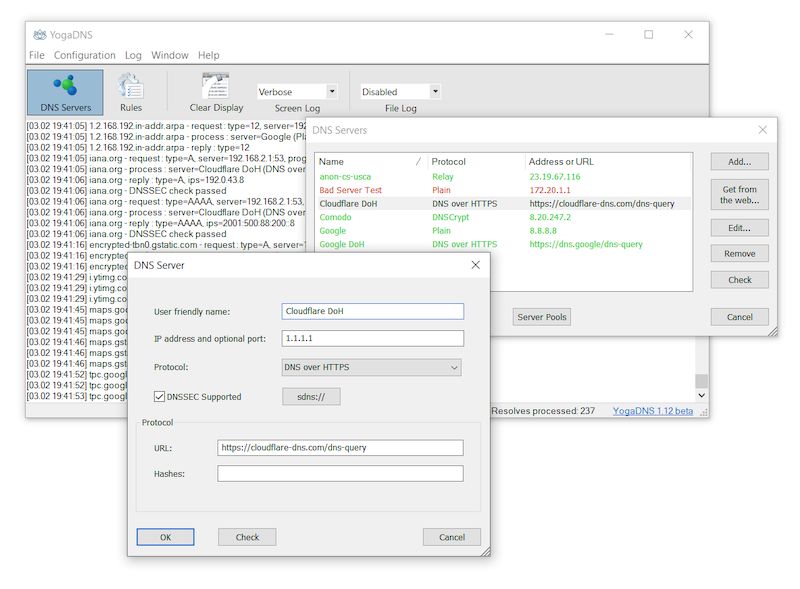 YogaDNS обеспечивает стабильное и безопасное разрешение доменных имён, снижая зависимость от провайдерских серверов.