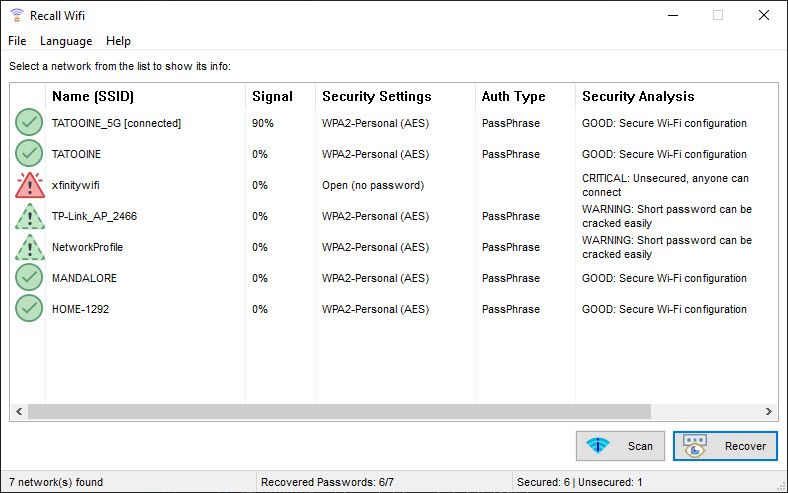 Recall Wifi разработана как простое и эффективное решение для просмотра паролей от беспроводных сетей, сохранённых в системе Windows. Приложение анализирует профили Wi-Fi, хранящиеся на компьютере, и демонстрирует их с расшифрованным ключом безопасности. Это особенно полезно, когда настройки доступа утеряны, а роутер не под рукой. Программа поддерживает современные стандарты шифрования, такие как WPA2 и WPA3, и корректно отображает информацию даже для давно забытых точек подключения.