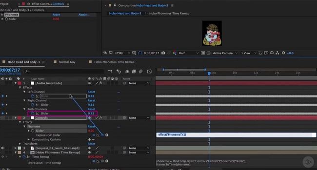 - Обучение работе с audio amplitude в Adobe After Effects для привязки движения рта к звуку