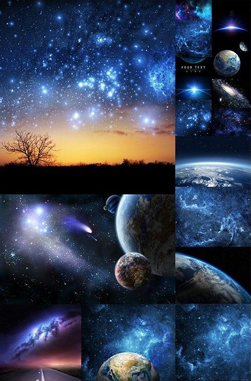 - Все материалы подготовлены в цветовой гамме, передающей атмосферу космоса и глубины вселенной.