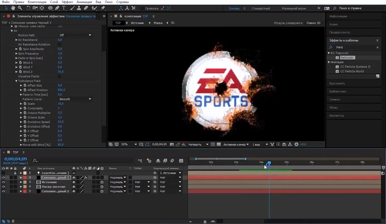 - Разбираются популярные плагины, такие как Trapcode, Particular, Optical Flares