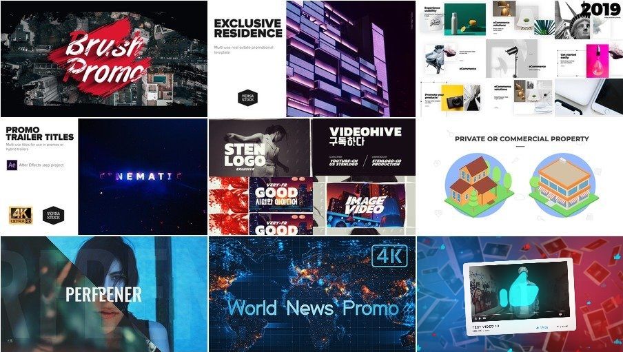 Данный комплект включает в себя девять разноплановых проектов, разработанных на основе популярных тематик и стилей, востребованных в современном видео-контенте. Среди них — Art Brush Promo с художественными эффектами, Exclusive Residence Real Estate для представления недвижимости и Minimal Promo с лаконичным дизайном. Каждый шаблон оптимизирован под высокое разрешение, включая форматы 4K, что делает их пригодными для профессионального использования. Особое внимание уделено настройке тайминга, анимации и переходов, что упрощает процесс редактирования и адаптации под нужды пользователя.