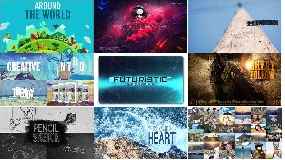 Сборка содержит девять тщательно проработанных проектов, каждый из которых демонстрирует высокий уровень анимационной графики и визуальной стилистики. В пакет вошли такие решения, как «Around the World», «Asteroid Cinematic Trailer», «Cold Times», а также «Creative Intro», «Futuristic World Trailer» и «Great Follow». Дополняют набор уникальные проекты «Pencil Sketch», «Summer Heart» и «The Grid Graphics Pack», которые открывают новые возможности для творческого оформления видеоматериалов. Эти шаблоны легко настраиваются под нужды пользователя, позволяя менять текст, изображения и цветовые схемы.